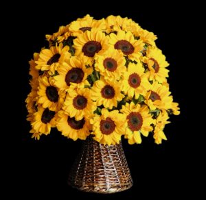 Impresionante arreglo floral de girasoles en canasto artesanal, 60cm de diámetro